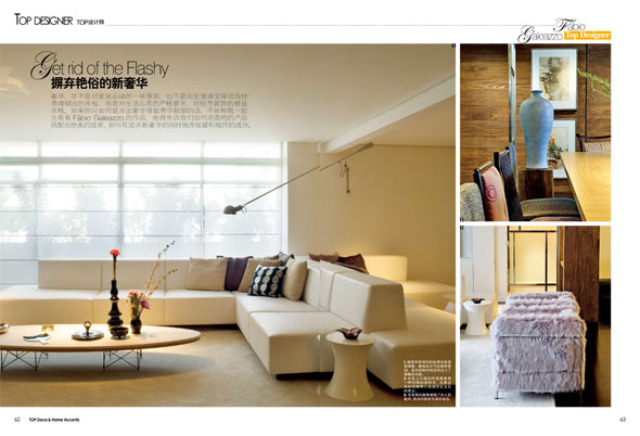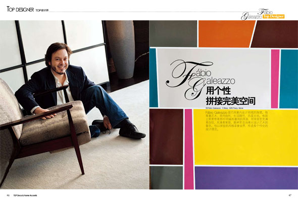 A revista Chinesa DECO & HOME ACCENTS, em sua edição de Agosto, convidou Fábio Galeazzo para apresentar o trabalho da Galeazzo Design na sessão TOP DESIGNERS, que recebe mensalmente o perfil de um nome de destaque do design mundial.