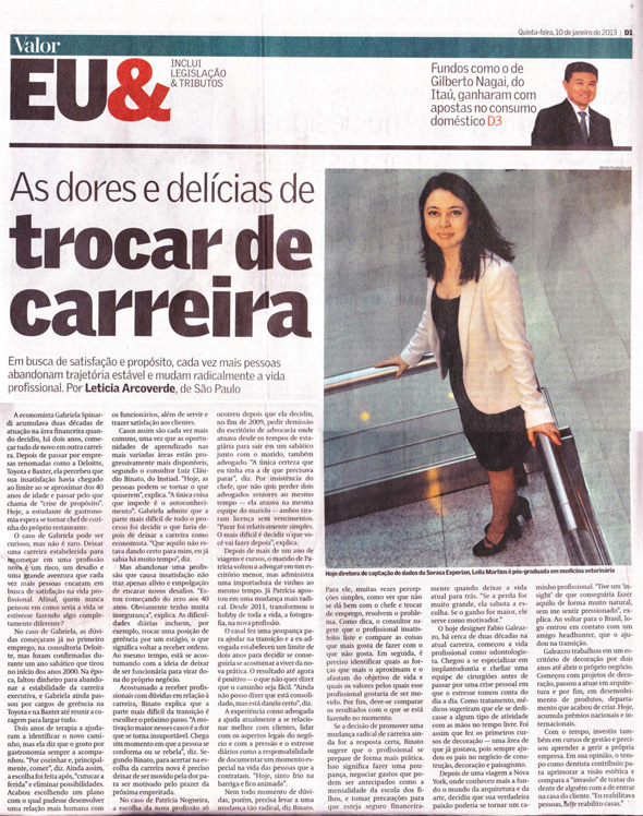 Semana passada, Fábio Galeazzo participou de uma reportagem no Jornal Valor Econômico sobre mudança de profissão.