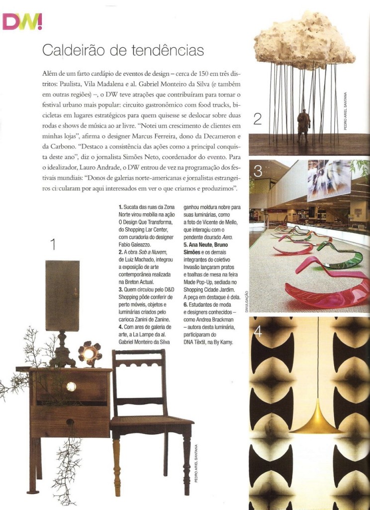 A edição de setembro da Casa Claudia trouxe em destaque o evento DW (Design Weekend), como não poderia deixar de ser, a equipe Galeazzo participou do evento em parceria com o grupo Gamb e o LarCenter na ação “O design que transforma” .