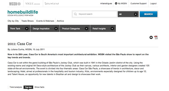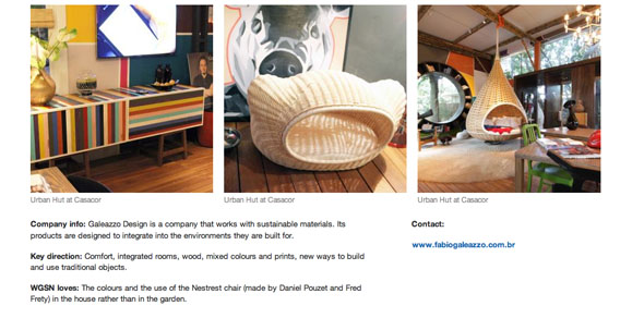 Neste mês foi trazido ao nosso conhecimento que diversos materiais da Galeazzo Design circulam no portal do WGSN e em seus PDFs de highlights de eventos.